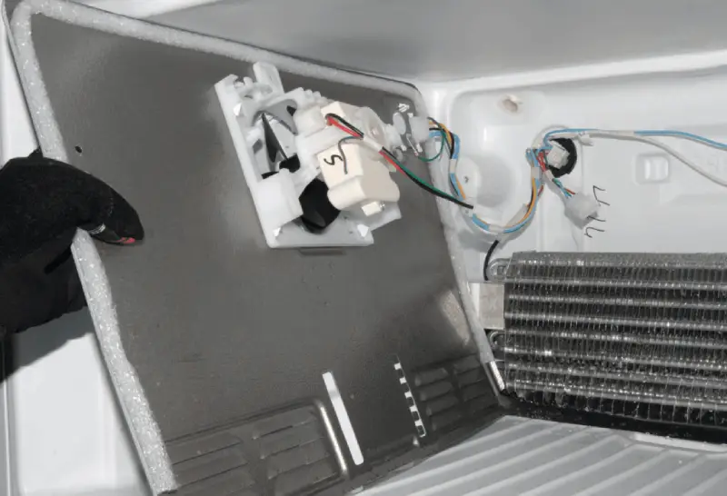 The defrost timer controls the time during which the refrigerator defrosts, but its malfunction causes clicking sounds. Therefore, check the timer for characteristic sounds, goodness it should be located inside the control panel or on the back of the refrigerator. If a faulty timer is found, replacing it will remove the noise and also normalize the defrosting cycle.